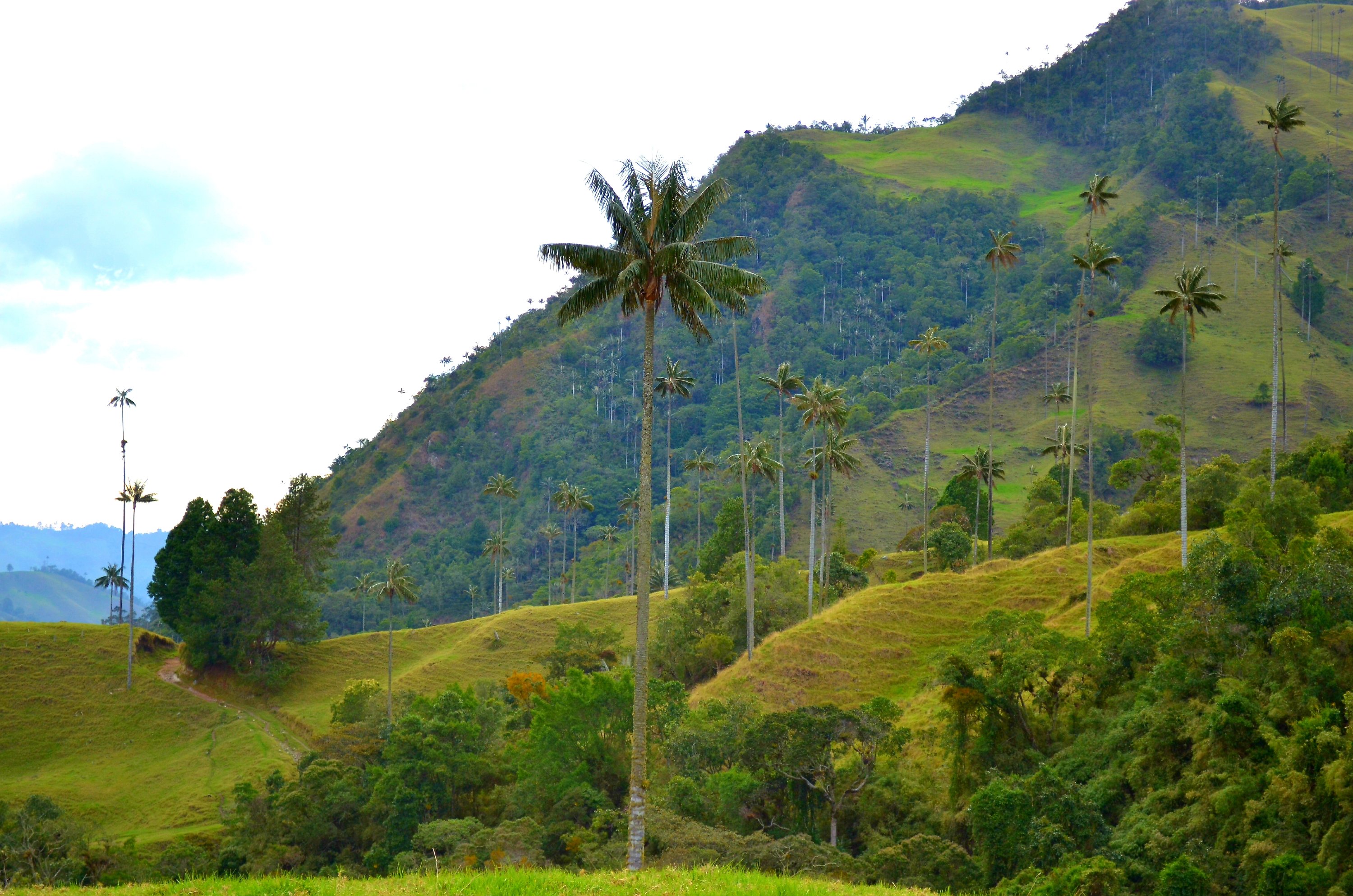 Vi hade bestämt oss för att hyra bil tillsammans och köra till den lilla byn Salento som ligger en bit väster om Bogotá. På kartan såg det ju rätt enkelt ut. Dagen började dock med en kulturkrock utan dess like när bilen skulle hämtas ut och vi plötsligt stod med summor att betala som skiljde sig rätt ordentligt mot de vi läst oss till dagen innan. Plus en självrisk på 50.000 svenska kronor. Men tack vara Anna och Martins flytande spanska så lyckades ”vi” förhandla bort det värsta. Något tillknycklade, men bara lite försenade satte vi oss i bilen. Fyra vuxna och tre barn och snart upptäckte vi att bilen kanske inte var riktigt så stor som den beskrivits på hemsidan. Martins gitarr i det hårda fodralet fick tyvärr stanna kvar på hostelet. Men humöret var på topp och under glada hejarop lyckades vi tillslut stuva in resterande pinaler. Sedan satt vi ordentligt hoptryckta och tätt, tätt tillsammans. Vad mysigt vi ska ha det! Vi körde glatt ut från parkeringsplatsen och så bar det iväg. I ungefär 5 meter. Sedan var det tvärstopp. 5 meter till. Stopp. Bromsa, bilköer, tutande och förbannade bilister och ännu längre bilköer. Efter två timmar hade både barn och vuxna tröttnat på de olika billekarna som vi försökt underhålla oss med, och vi hade ännu inte kommit utanför Bogotás stadsgräns. Vi insåg efterhand att vi hade lyckats pricka in en av Colombias största långhelger och därmed befann vi oss nu mitt i ett stressat gäng på flera miljoner semestrande människor. 10 timmar senare, när mörkret för längesedan lagt sig över oss och vi alldeles för många gånger förfasats över hur människor spelade roulette med sina egna liv på de smala, stupande bergsvägarna, så såg vi äntligen skylten som visade att vi närmade oss Salento. Vilken lycka det vara att få stoppa om barnen i den friska bergsluften och sedan skåla i varsin öl innan vi alla kraschlandade i våra rum.