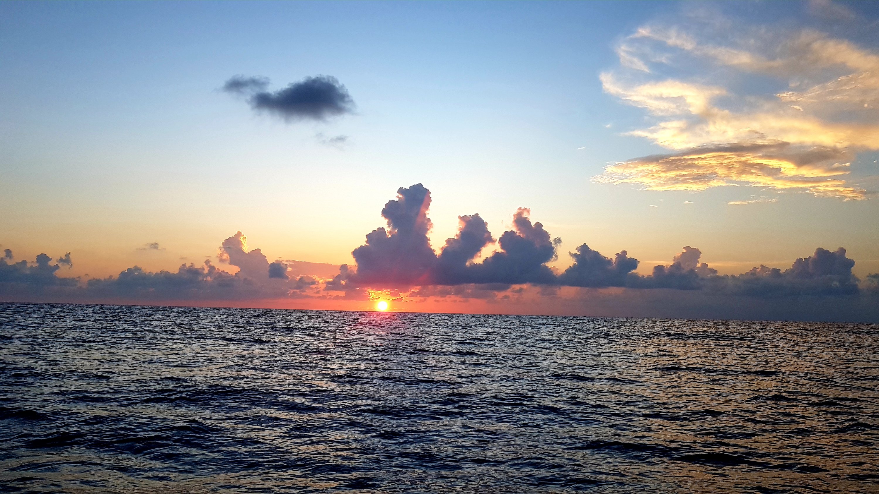 Planen var att hålla upp mot Jamaica för att på så vis få maximalt avstånd till Gorda Banks och då vindarna till en början skulle blåsa nordost så fick vi bidevind att segla på. Nausica seglade som en dröm och gjorde betydligt mer fart än vi räknat med. Vågorna var dock bråkiga och den där härliga nyduschade känslan försvann allteftersom saltvattnet rann genom håret. Vågorna smällde in i sidan och ingen av oss kom undan. Det går så snabbt från att båten känns fräsch, ren och iordning till kaos om någon skulle glömma att stänga en legolåda, spiller lite mat eller om en guldmakrill ska rensas där man sedan ska ha nattvakt.