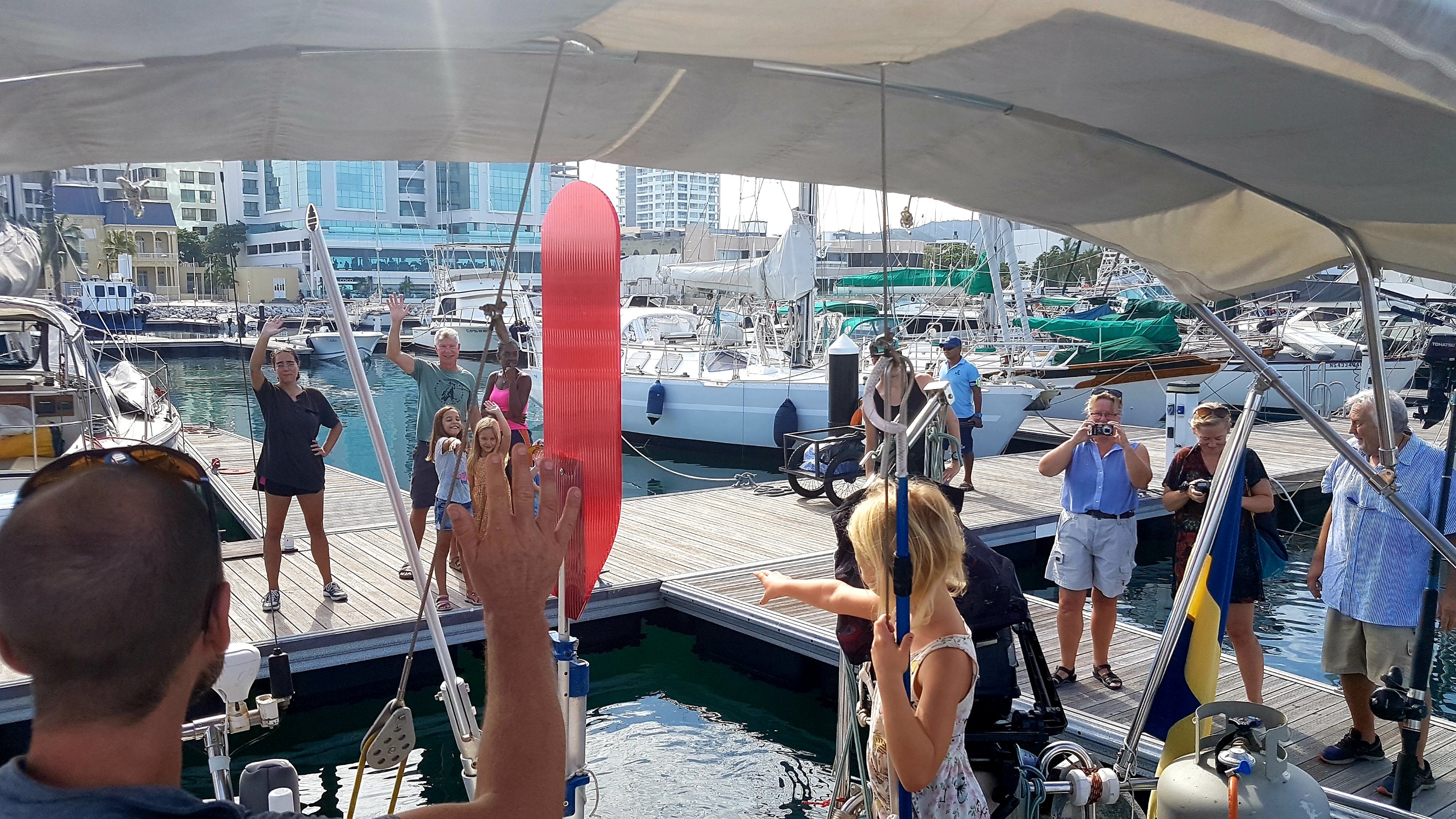 Nu stod vi på bryggan och tårarna rann när vi återigen skulle säga hejdå till fina vänner och familj. Vi hade haft turen att träffa Blue Pearl och Tryst igen i Santa Martas marina men här visste vi med säkerhet att vi tog olika vägar framöver. Anders familj hade varit på besök hos oss i ett par veckor och det var sorgligt och märkligt att vinka av dem vid bryggan i Colombia. Tyvärr missade vi vänbåten Zouterik med bara ett par dagar och det kändes riktigt tungt för både oss vuxna och barnen. Men vi hade ett bra väderfönster som vi inte kunde missa och vi kände oss redo för nästa etapp, överfarten till Kuba!