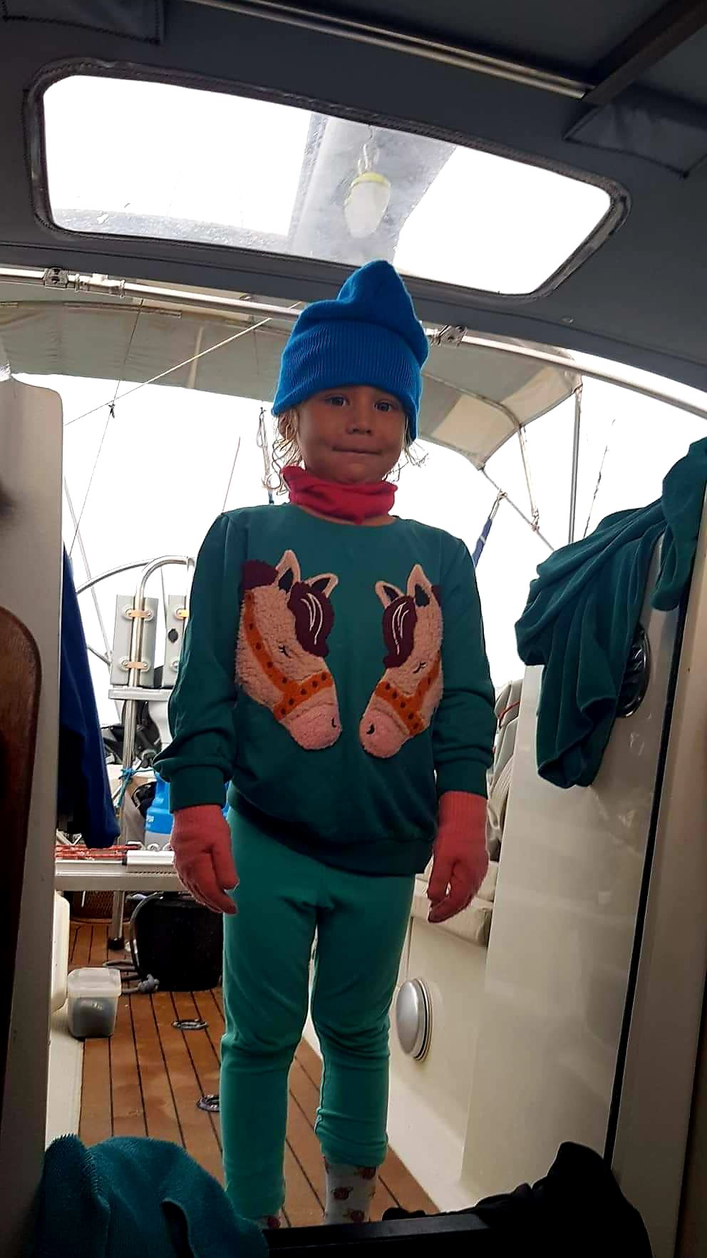 En av dagarna mötte vi ett passagerarfartyg där kaptenen Andreas visade sig vara Göteborgare. Det blev en härlig pratstund över vhf:en mitt ute i havet och det kändes tryggt att veta att vi inte var ensamma när tankar på pirater kröp runt i huvudet. Annars gick dagarna i ett lugnt tempo. Rutiner skapades med skola, Colombiansk fruktstund, sagopoddar med Bröderna Lejonhjärta, fantasifulla legobyggen, hålla ordning på tomtenissen och vila middag. Ja och så gick ju toaletten sönder förstås. Redan första dygnet faktiskt. Ett fel som tyvärr inte gick att fixa under segling så det var bara att ta fram den svarta hinken. Eller i lugnt väder så kunde man vackert hänga ut baken och armkroka sig fast i vindrodret och sedan var det bara att njuta av makalös toalettutsikt. Samtidigt infann sig en liten, liten stress när man funderade över vilka djur som simmade runt där under ytan.