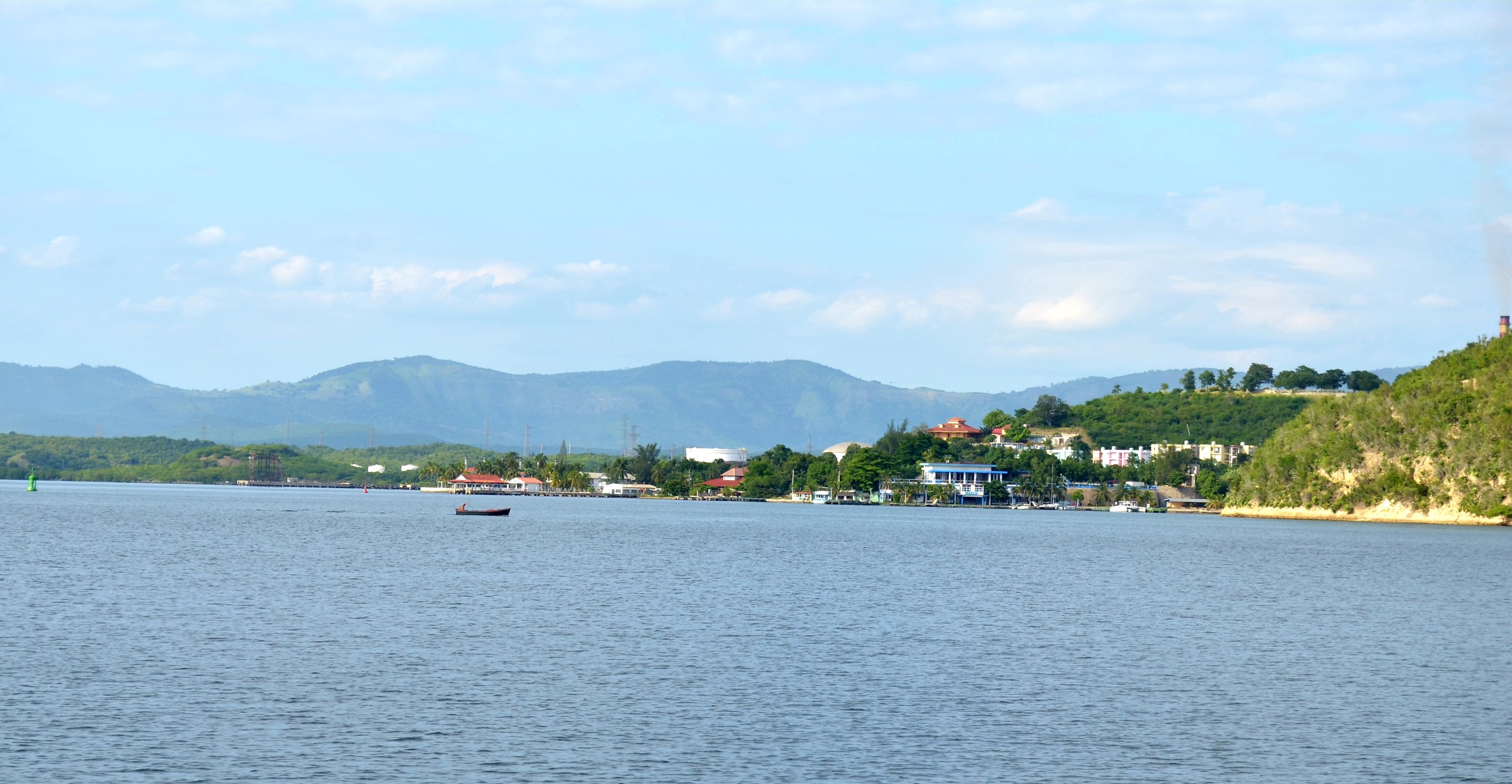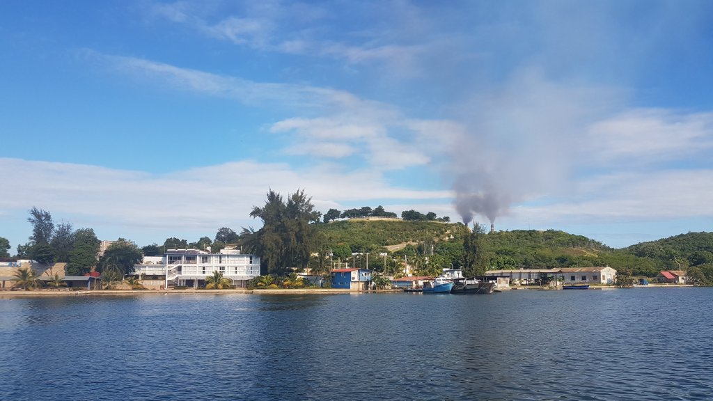Ankarviken i Santiago de Cuba med bolmande industri i bakgrunden
