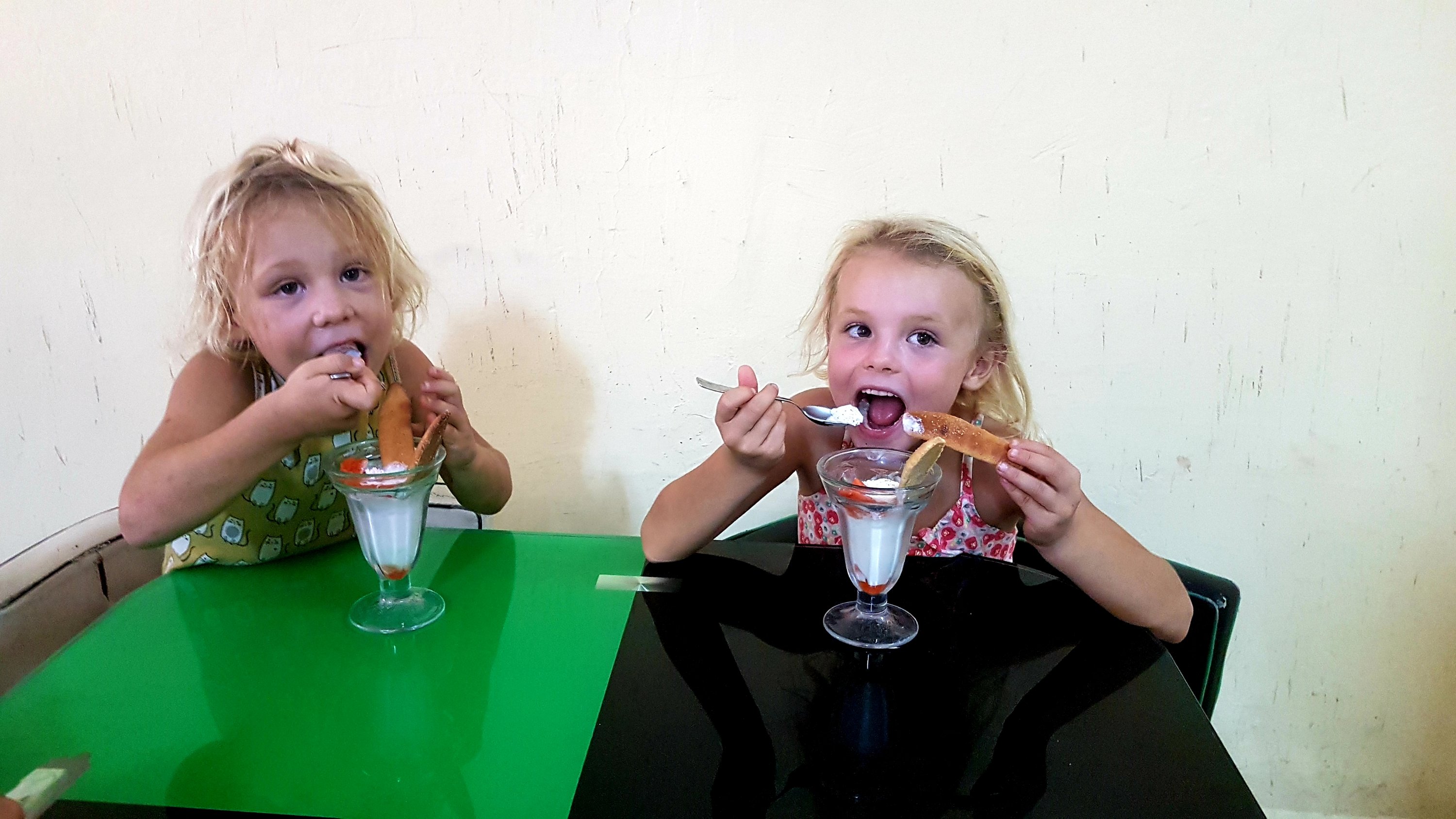 Tänk att två veckor kan gå så fort och plötsligt var det sista kvällen tillsammans. Mina föräldrar köpte mat från den lilla boden där kvinnan lagade maten framför ögonen på en, vi vuxna drack gott rödvin och barnen njöt av svensk lingondricka. Vi försökte att sammanfatta tiden tillsammans och kom i tur och ordning på roliga anekdoter som hänt. Vi skrattade mycket men plötsligt lutade sig Tilda framåt, spände ögonen i mormor och sa ordagrant: ”Kom nu ihåg mormor, att när du kommer hem till Växjö igen så kan inte morfar göra allting.” Sedan tog hon lugnt morfar i handen och tittade honom djupt i ögonen: ”Morfar du måste lära dig att säga ifrån. Och kan du inte säga det så får du skriva det på en lapp!”
