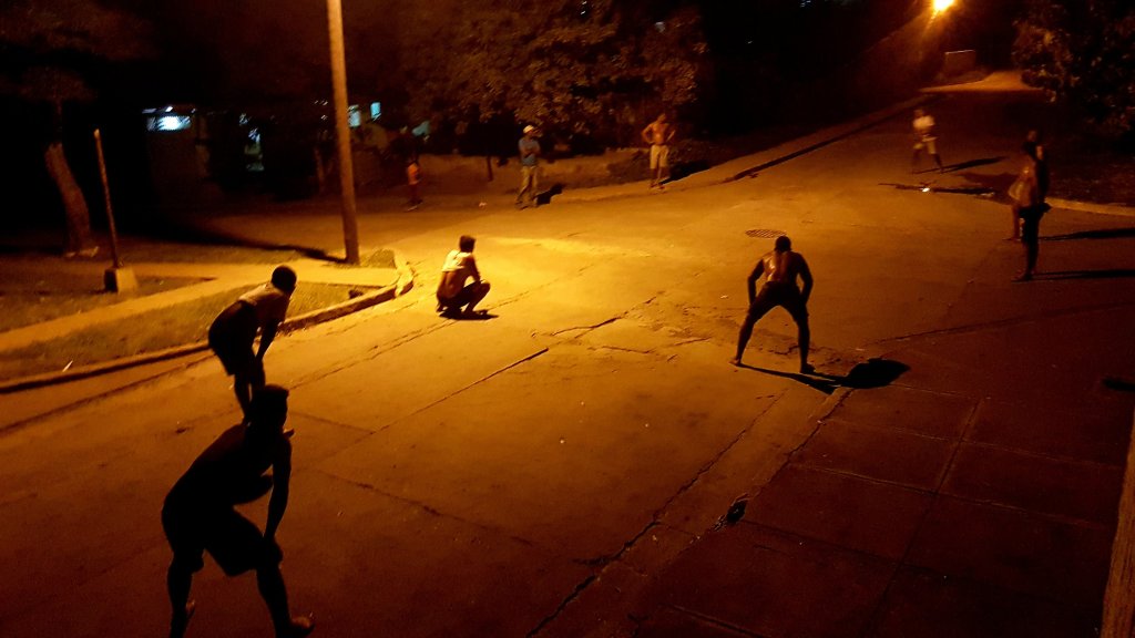 På kvällarna spelades baseball på gatorna. De hade inga racketar utan slog bollen med handflatorna.