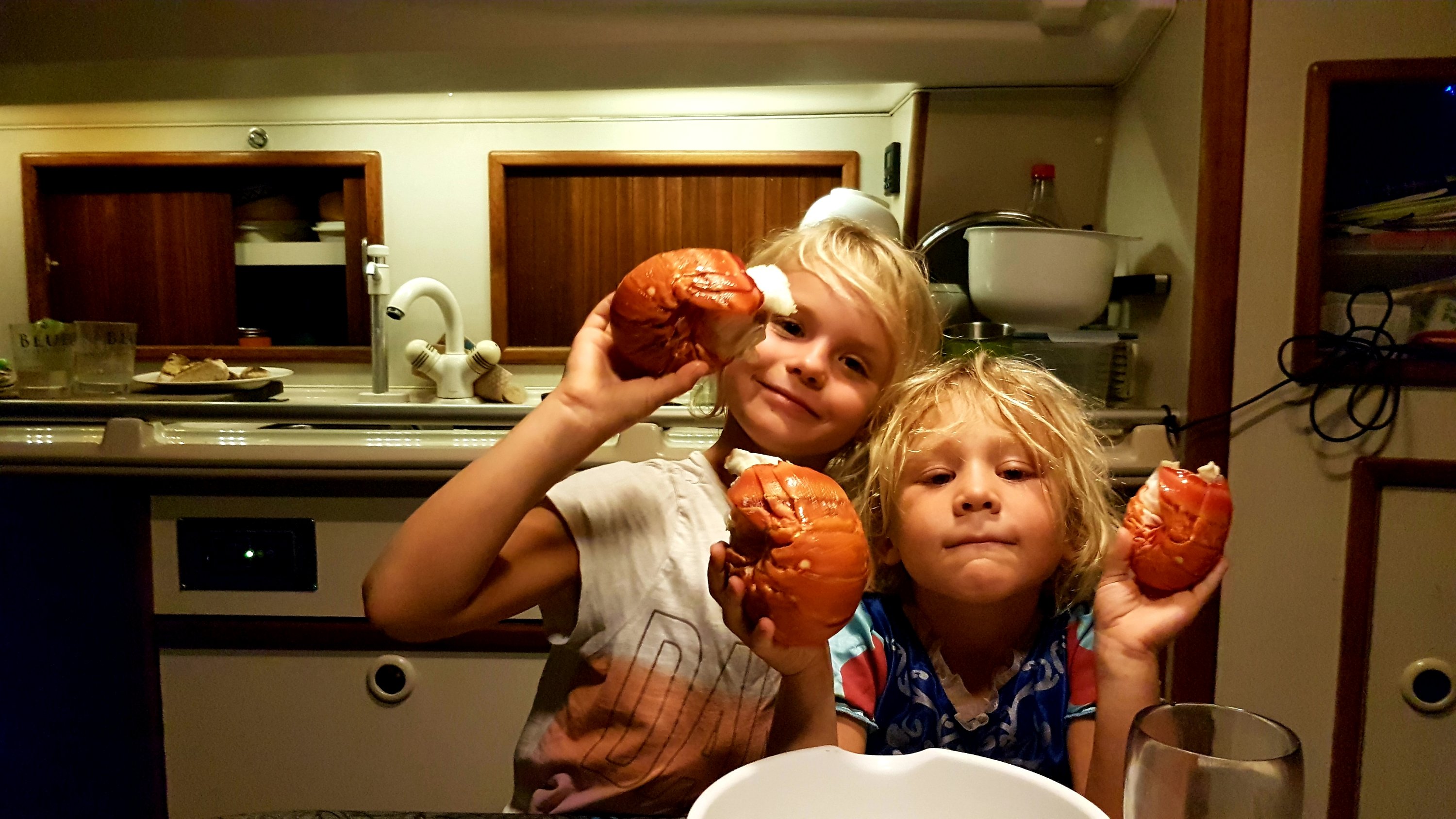 På nyårsafton lyxade vi på vårt egna vis och köpte varsin ordentligt tilltagen glass åt barnen. Barnen har en enorm support från vår fina vän Robban hemma, som med jämna mellanrum under de här två åren har skickat glasspengar åt dem. Lyckan över just den här glassen var speciell då det var årets sista dag och garanterat årets dyraste glass. Men att den var god gick inte att ta miste på. Kvällens lyxiga nyårsmeny bestod sedan av en extremt spontan kikärtsröra då köttfärsen till de hemmarullade köttbullarna visade sig vara rutten. Köttbullar på nyår kan ju tyckas lite tamt redan från början, men hummer har vi ätit så mycket det senaste halvåret så äkta köttbullar kändes som höjden av lyx för oss. Efter denna kulinariska upplevelse satt vi på fördäck och såg hur solen gick ner över lyxbåtarna i viken. Vi var mätta och nöjda och jag kom på mig med att tänka på våra vänner i Kuba, hur har ni det? Kom tomten till er som ni hoppats på? Får ni också sitta tillsammans och känna er trygga och nöjda ikväll? Som jag önskar att vi hade ett sätt att kontakta er på.