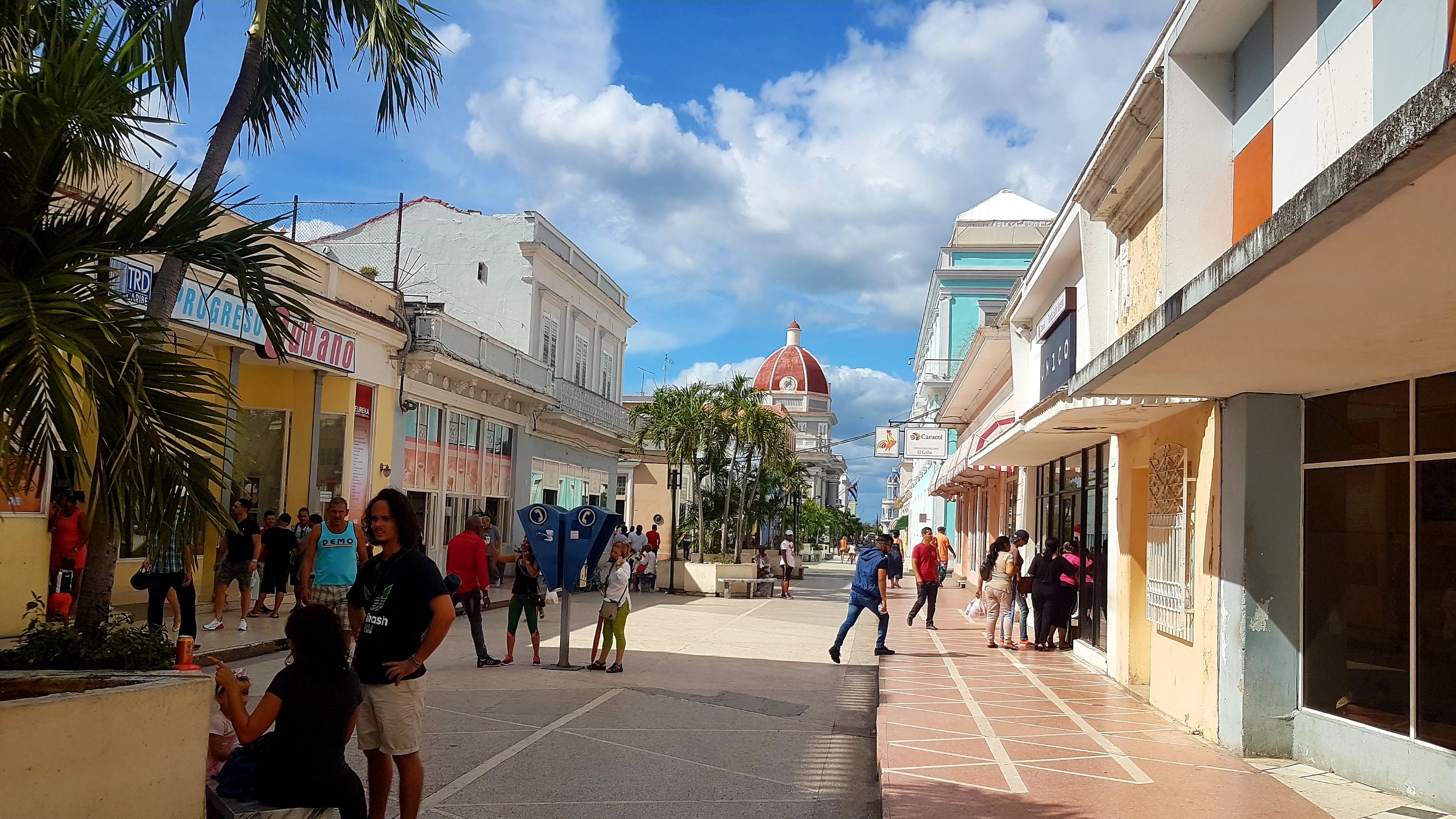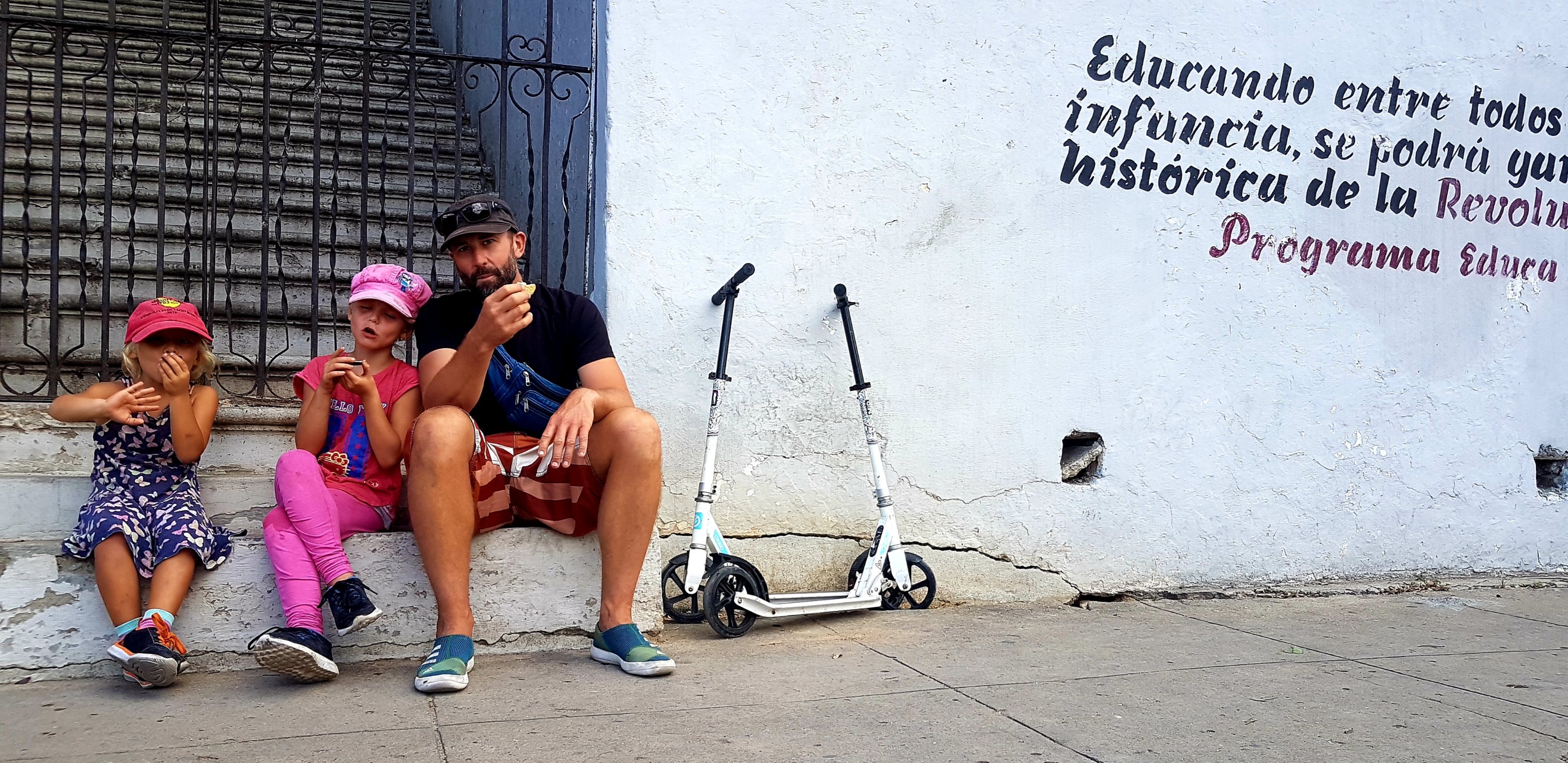 Den första dagen tog vi oss in till Cienfuegos som var ca 30 minuters promenad från marinan. Vi gjorde det utomordentligt smarta draget att lägga en svettig halvtimme på att få upp barnens sparkcyklar ur det djupaste stuvutrymmet i båten. Detta genererade i två glada barn som mer än gärna ville ta sig hur långt som helst. Sparkcyklarna som vi köpte i Frankrike ligger på vår topp 5 av bästa inköp den här resan.