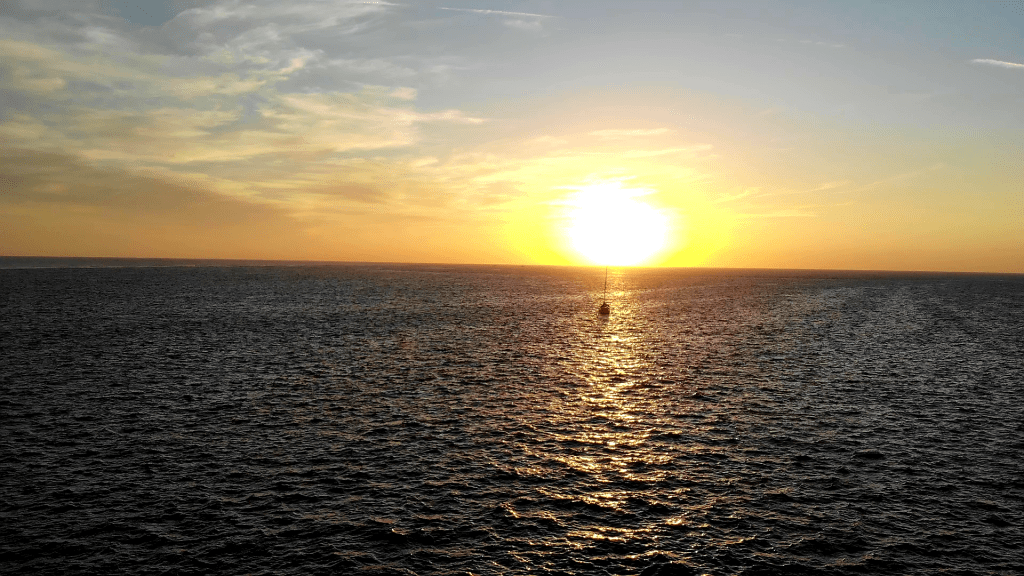 Nattsegling med underbar solnedgång.