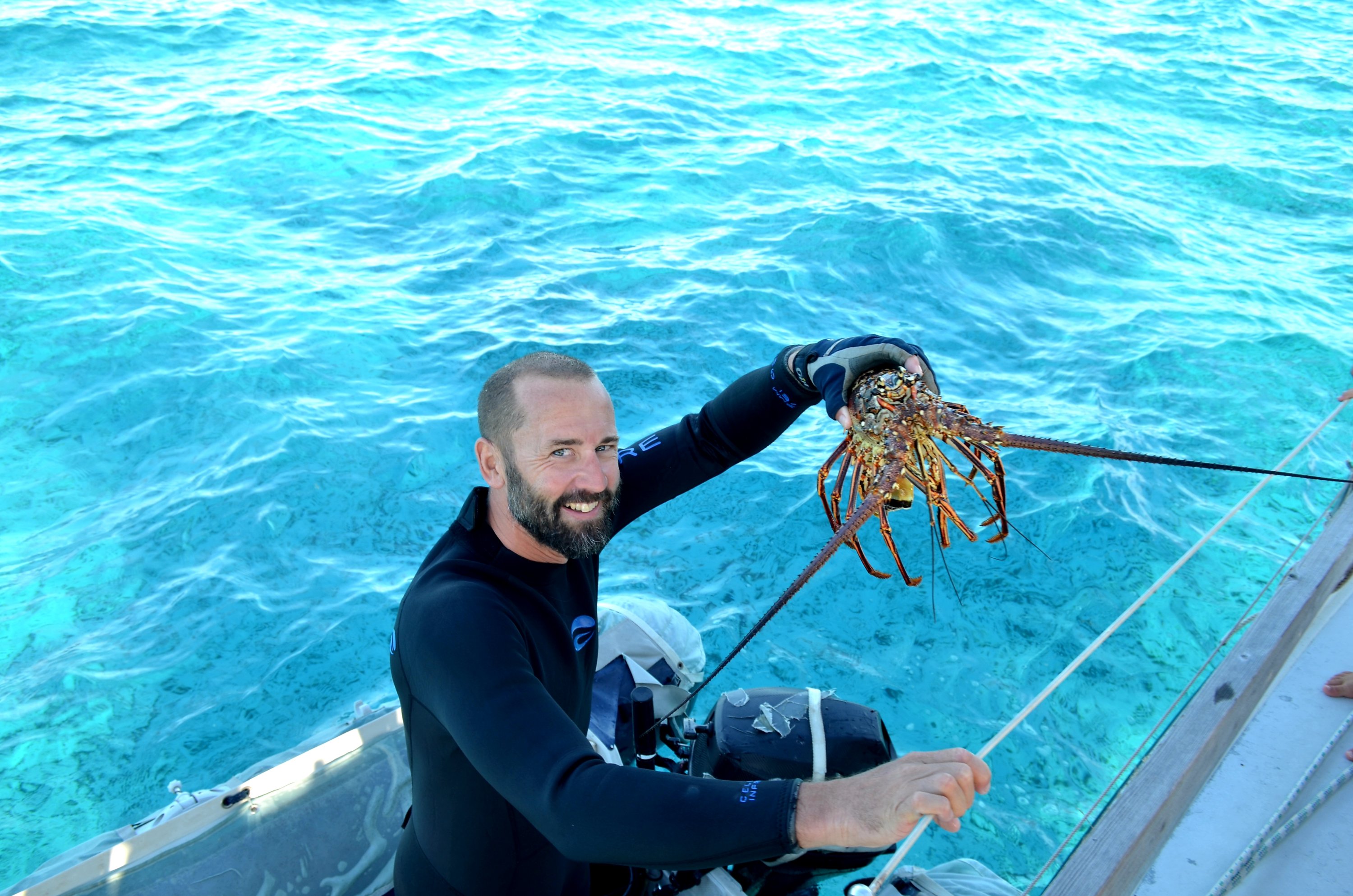 I tre dagar låg vi på Hogsty reef och det var en naturupplevelse olikt mycket annat vi varit med om. Både under och över ytan. Anders fiskade och middagarna var alltid två-rätters med hummer till förrätt. Vinden ville inte lägg sig och vårt hem rullade ordentligt. Om nätterna fick vi spjärna emot väggarna och klamra oss fast i varandra för att inte rulla fram och tillbaka. Det låter ju lite galet nu när jag skriver om det men det var precis så. Jag var konstant sjösjuk och det förtog en del av det ljuvliga i det hela, och tillslut så gav jag upp. ”Nu vill jag härifrån.” Anders som befann sig mitt i sitt paradis tittade frågande på mig. ”Men va? Jag ska ju precis ut och fånga mer fisk.” På olika kreativa vis försökte han få en timme till under vattnet. ”Hummer! Jag lovar att hitta hummer!” Just då brydde jag mig inte det minsta om nån jädra hummer och sjösjukeilsken som aldrig förr skådats på Hogsty reef, röt jag oromantiskt åt honom att göra sig beredd. ”Jag seglar nu och ska du följa med så får du hålla dig ombord!” Som tur var så höll han sig i båten och som tur var så blev jag snart trevlig igen. Och Hogsty reef var verkligen fantastiskt!