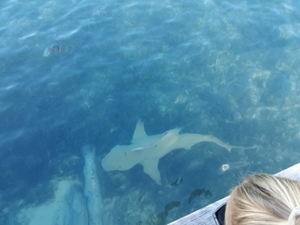 Hajar som simmade under bryggan. Vi upptäckte dem efter vi badat.