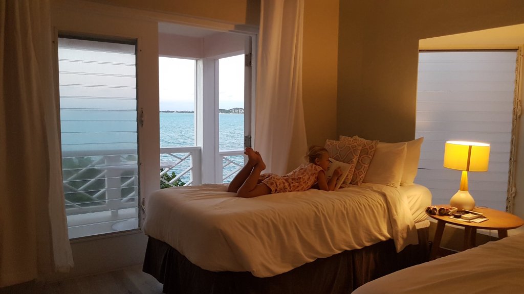 När barnen lite senare fick se hotellrummet som mina föräldrar hyrt så utbrast Agnes snabbt att här ska hon minsann bo för alltid! Vi alla höll med henne och i ett eget rum med dubbelsäng och havsutsikt så var det inte svårt att se sig själv på land under en tid. Barnen fick medhavda presenter från vänner hemifrån, vi vuxna fick ett gäng handsydda gästflaggor som mamma kämpat ihop och även påfyllnad av svenska läckerheter som man saknar efter en tid. Den första kvällen firade vi med bubbel och god grillbuffé i hotellets restaurang. Ett band spelade utomhus och så fort barnen svalt sista tuggan på sina hamburgare så rusade de ut för att stämma in i dansen. Jag funderade ett tag på om de kanske saknade oss och förväntade mig halvt om halvt att de snart skulle komma in och be oss att dansa med dem. Men när jag kikade ut möttes jag av ett jubel på det lilla dansgolvet och såg hur Tilda och Agnes drog upp än den ena, än den andra mest stelbenta stackare och insåg snabbt vilka som var huvudpersonerna där ute. Och hur de älskade situationen. Som tur var så fick vi också vara med och dansa med dem.