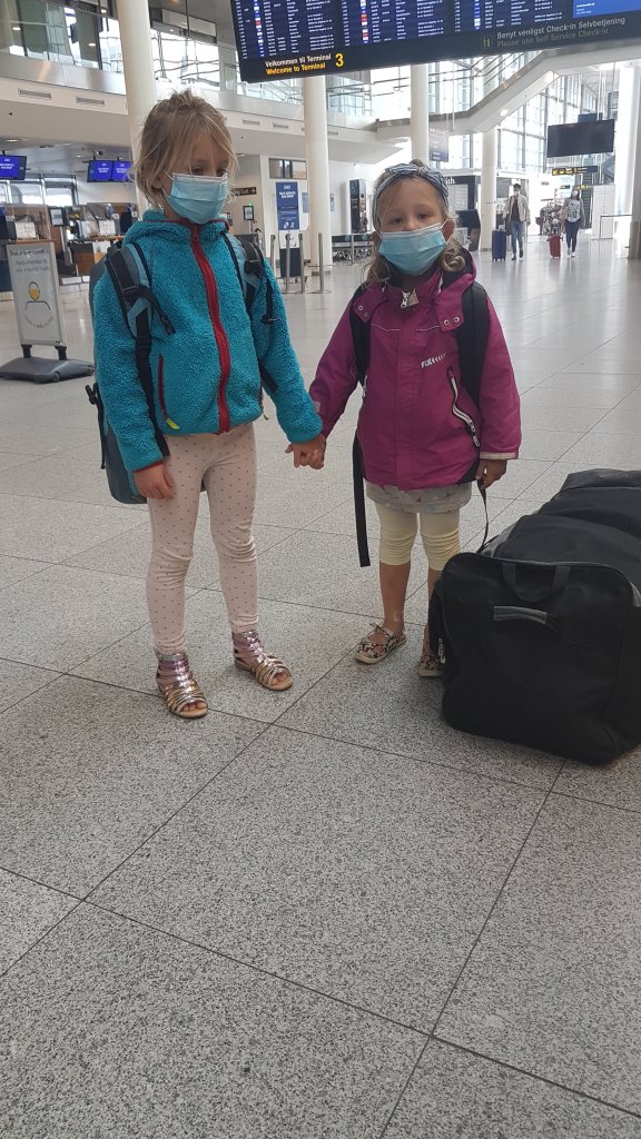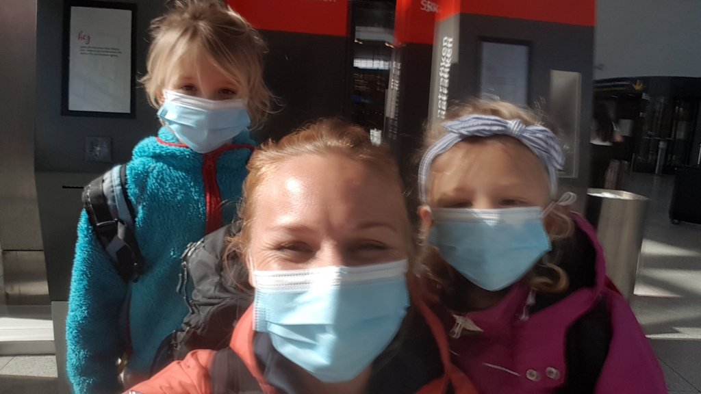 Sedan bar det minsann av mot Holland! Jag hade laddat med allehanda skyddsutrustning, intyg och brev från våra vänner i Holland som vi skulle bo hos. Jag hade fått ett telefonnummer till en privatperson inom gränspolisen som lovat att hjälpa mig om det behövdes. Jag hade till och med förberett barnen på att vi eventuellt skulle få en pinne i näsan på flygplatsen för att bevisa vår förhoppningsvisa negativitet. Barnen var inte helt nöjda över denna eventuella pinne. Fullt förberedda och lätt nervösa så landade vi ändå tillsist i Holland med munskydd, handsprit och nariga händer. Det enda vi fick höra var dock ”Welcome! Please keep your distance and go to self-quarantine”. Vi kände oss nästan lurade. ”Så ingen pinne i näsan alltså mamma?” undrade Tilda försiktigt när vi utan krusiduller klev utanför flygplatsområdet.