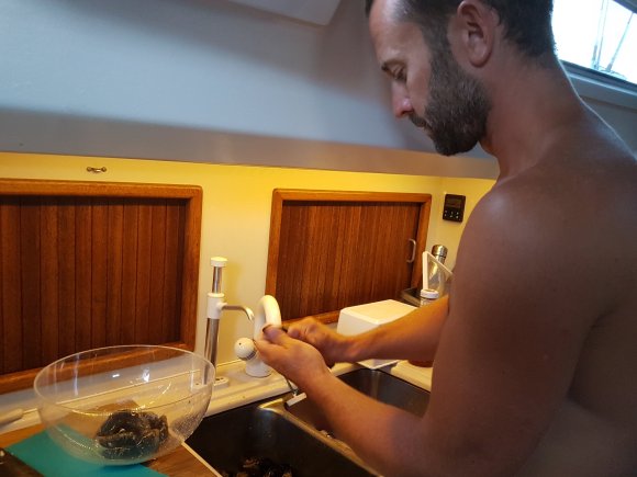 I Santa Cruz marina fick vi en fin plats med utkik över öns vulkaner. Vi hamnade bredvid en annan svensk båt som otroligt nog varit ute och seglat i 7 år! De delade med sig av en hel del tips om stort och smått, alltifrån bra ankringsvikar i Karibien till vilka fällor som kan vara bra att ha mot kackerlackor. Vi har även fått tips om just metoder mot kackerlackor av Anders morbror Leif, bättre att mata dem än att spraya dem vill jag minnas att du skrev. Och med de orden i huvudet gick vi på jakt, ja nu utifall att dessa små djur skulle hitta oss. Kackerlackor är något vi förstått att de flesta långfärdsbåtar förr eller senare råkar ut för och jag bearbetar mig själv till att tycka det är ok.