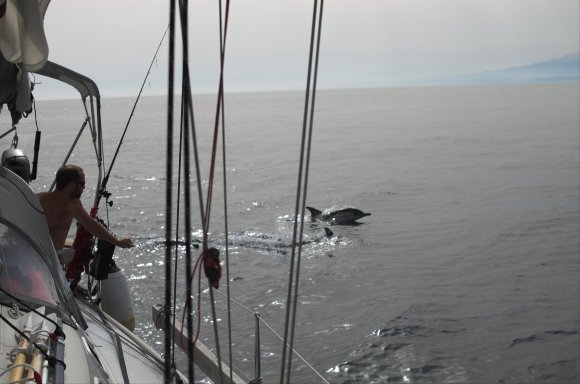 Men när vi plötsligt, långt bort i fjärran fick se det där jätteblåset från ett stort djur så hade alla i familjen glömt det. Den här gången var valen inte lika långt bort ifrån oss och närmare kom den. Och närmare. Och närmare. Tillslut stod vi alla fyra och höll andan och jag visste inte riktigt om det kändes bra eller ej när valen, bara ett par meter ifrån oss, plötsligt gjorde ett dyk ner under Nausica. I det klara vattnet kunde vi se den stora kroppsmassan, förvånansvärt graciöst, långsamt försvinna under oss för att en stund senare lika långsamt och graciöst dyka upp på andra sidan. När chocken släppt gav hela familjen upp ett lyckotjut som troligtvis hördes hela vägen tillbaka till Fuerteventura. Det var en overklig upplevelse. Senare fick vi även besök av en flock med fenvalar som med sina stora fenor, likt stora men betydligt lugnare delfiner, simmade mot oss och runt oss i sin väg bortot. Tack du underbara hav som gav oss detta. Jag lovar att vi ska fortsätta ta hand om och respektera dig så bra som vi bara kan.