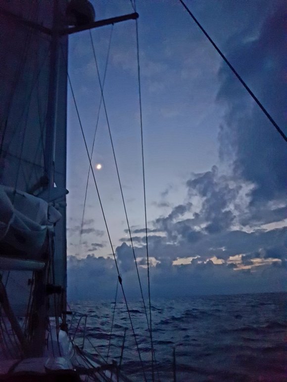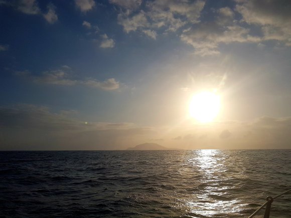 Vi seglade från La Graciosa med vinden i ryggen och solen i ansiktet när vi valde att gå på västsidan om Lanzarote. Vi seglade med spirade segel och hade en helt ljuvlig dag på havet. Alla parametrar var på topp. Då vågorna var minimala hade jag skippat sjösjuketabletterna vilket innebar att jag var pigg och klar i huvudet hela vägen, och bara det är ju en fin känsla. Vi hade disco ombord, skola med fokus på glädje, pyssel i massor och besök av vår första flygfisk! Som en stor klarblå fågelliknande fisk kom den ”flygandes” vid sidan om oss. Och som den flög! Jag har aldrig sett en flygfisk tidigare så jag vet inte vad jag hade förväntat mig, men jag trodde nog inte att den kunde ta sig en sådan lång sträcka ändå.