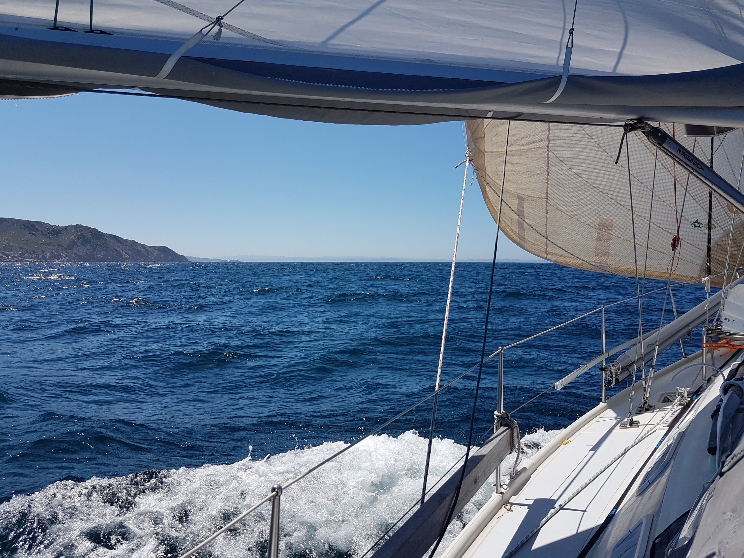 Stormfocken testas i fint väder.